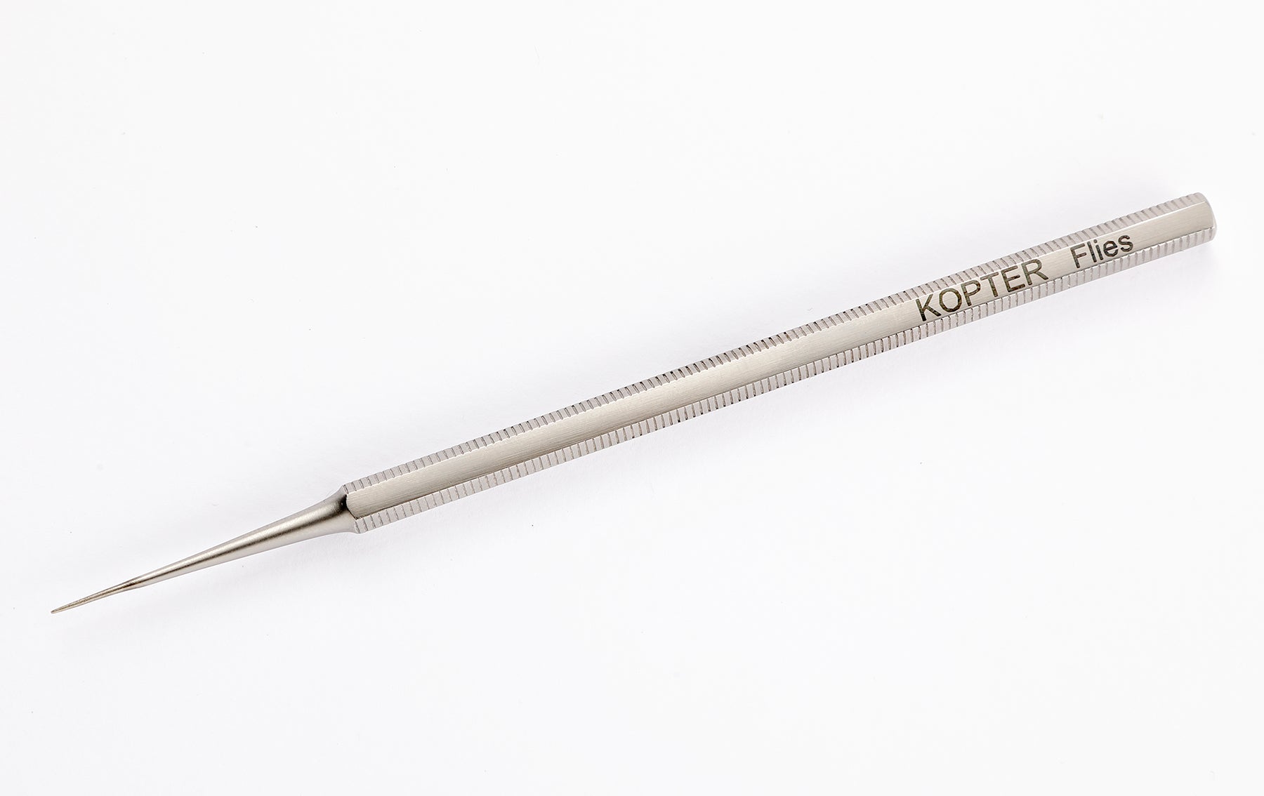 A high-quality stainless-steel bodkin from Kopter. Hexagonal shape so it doesn't roll on your bench, and a grooved and sandblasted handle for a non-slip grip.