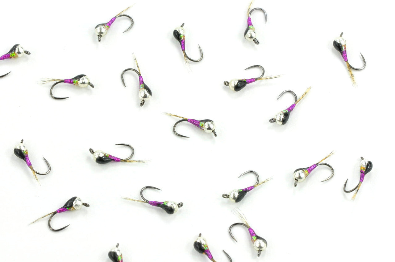 Note: the perdigons are tied on barbless straight nymph hooks or jig hooks depending upon the size instead of the models in the photo.