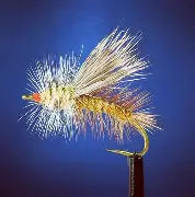The classic stimulator dry fly with a flash underwing. Fish it along or with a nymph dropper.