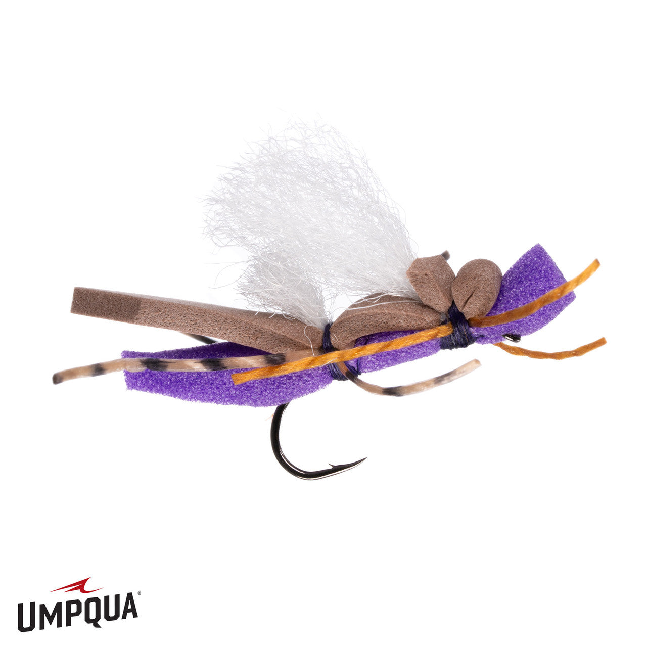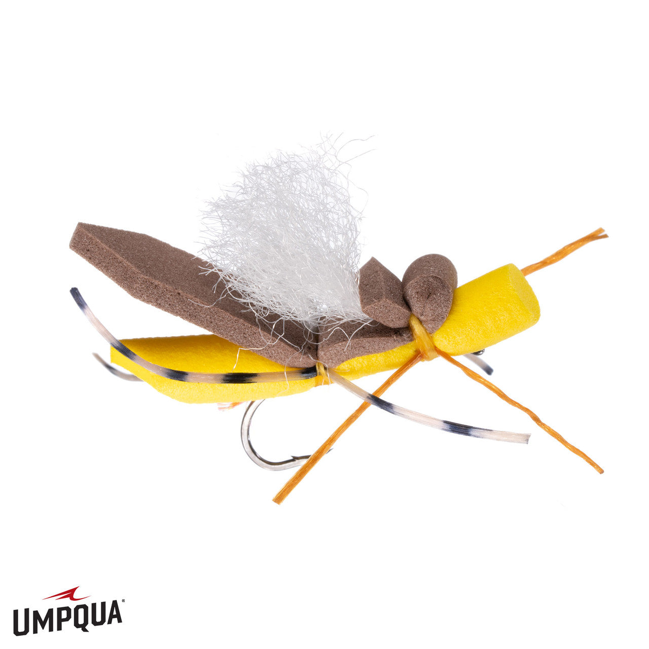 1- uses a cylinder foam body to better match the silhouette of a grasshoppers abdomen.