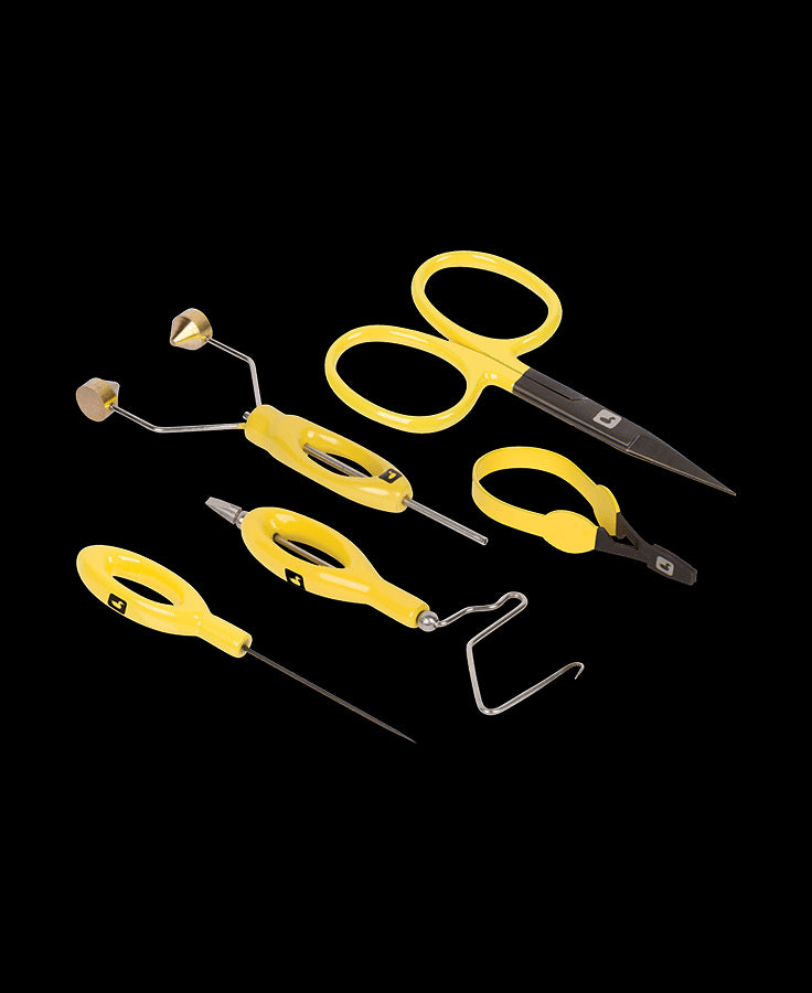 Packaged in a heavy-duty travel case and featuring the Ergo All Purpose Scissors, Ergo All Purpose Bobbin, Ergo Bodkin, Ergo Whip Finisher, and Ergo Hackle Plier this is an excellent choice as a gift for the first-time tyer, or the long-time tyer who wants to trick out his or her bench with something new.