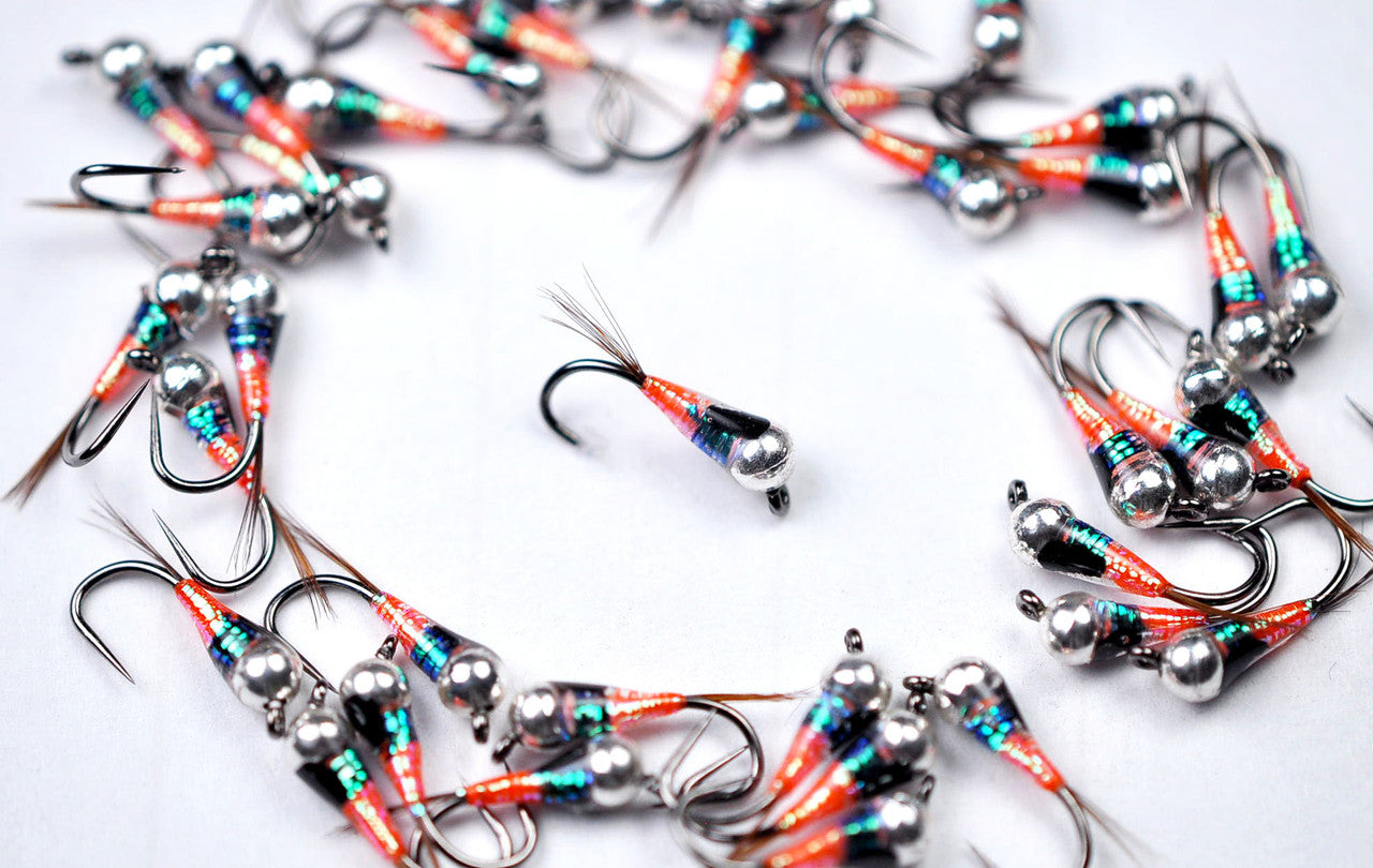 Note: the perdigons are tied on barbless straight nymph hooks or jig hooks depending upon the size instead of the models in the photo.