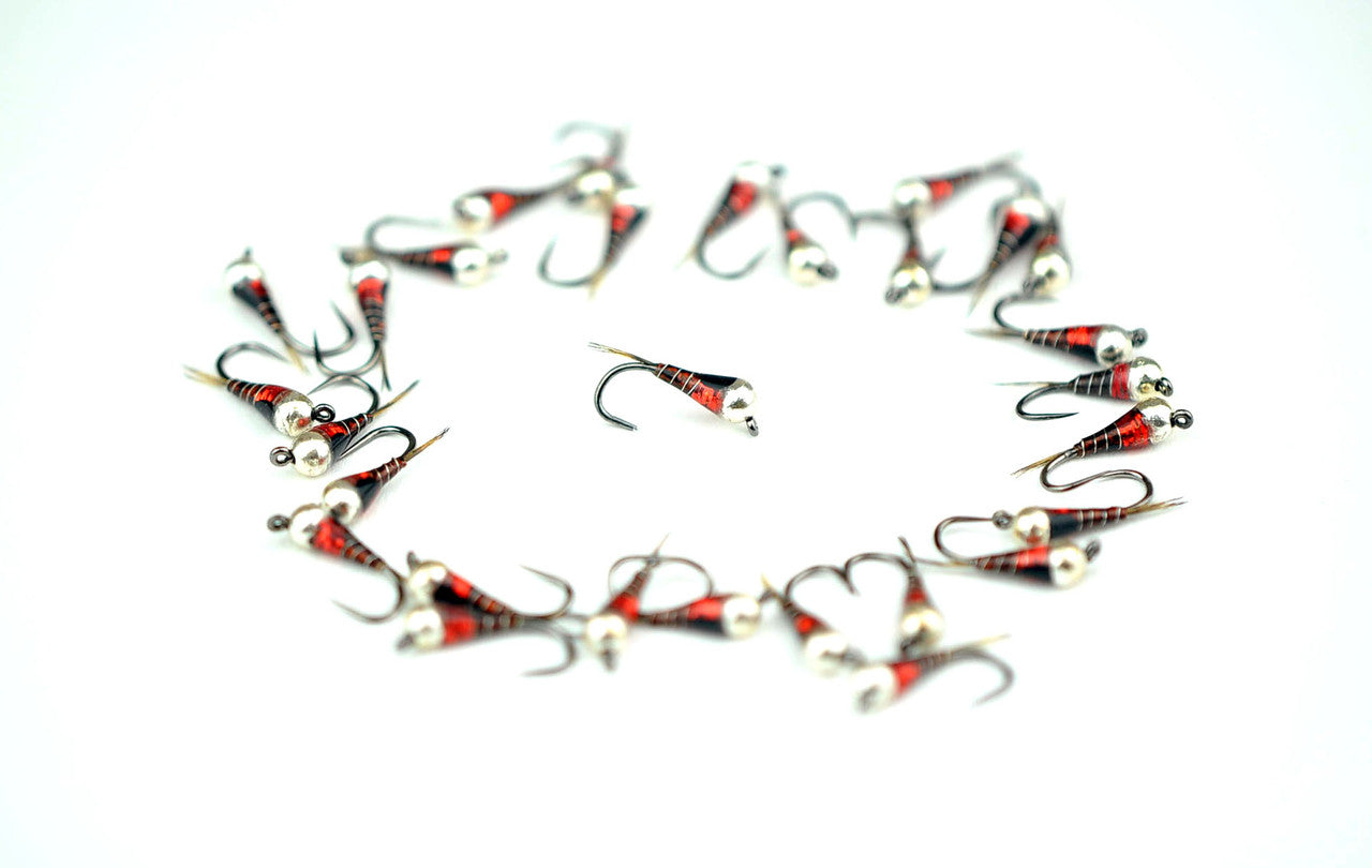 An extremely fishy perdigon featuring claret and silver. We're big fans of the dark body with a silver bead and just a hint of red! Tied by our friends Cesar Dominguez and Oscar Quevedo Iglesias of Spain.
