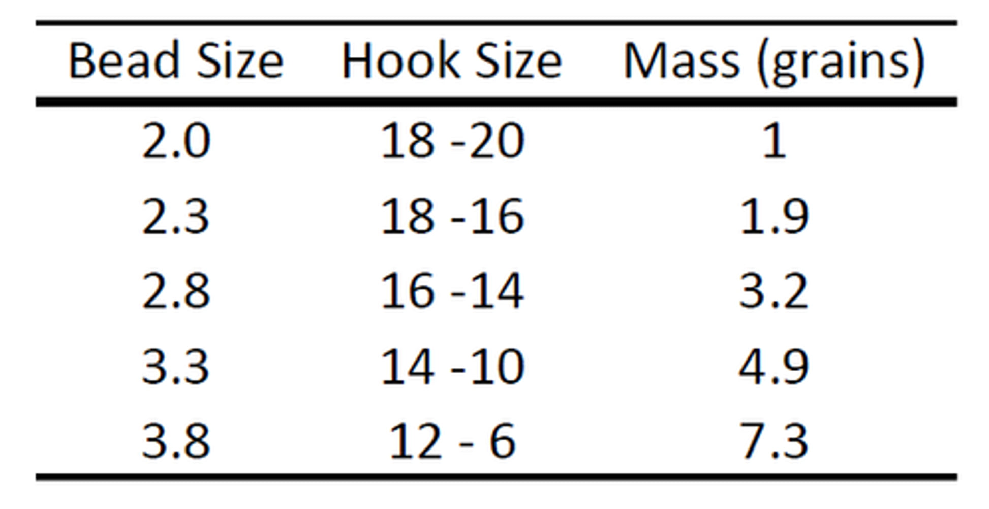 | Hook Size | Bead Size |