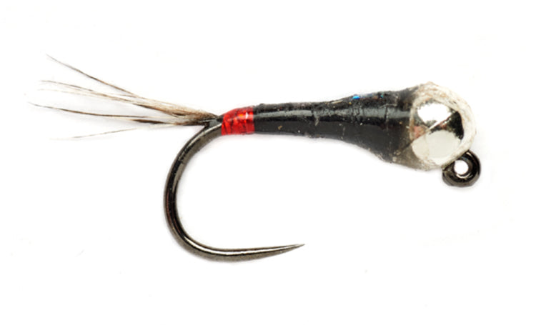 A French color schemed perdigon nymph tied by Fulling Mill.