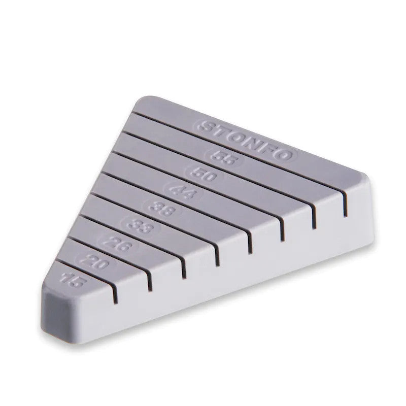 Nifty little tool from Stonfo for folding CDC feathers in half so you can grab both sides in your dubbing clip easily. Different length slots for feathers of varying lengths, equipped with three anti-skid feet.