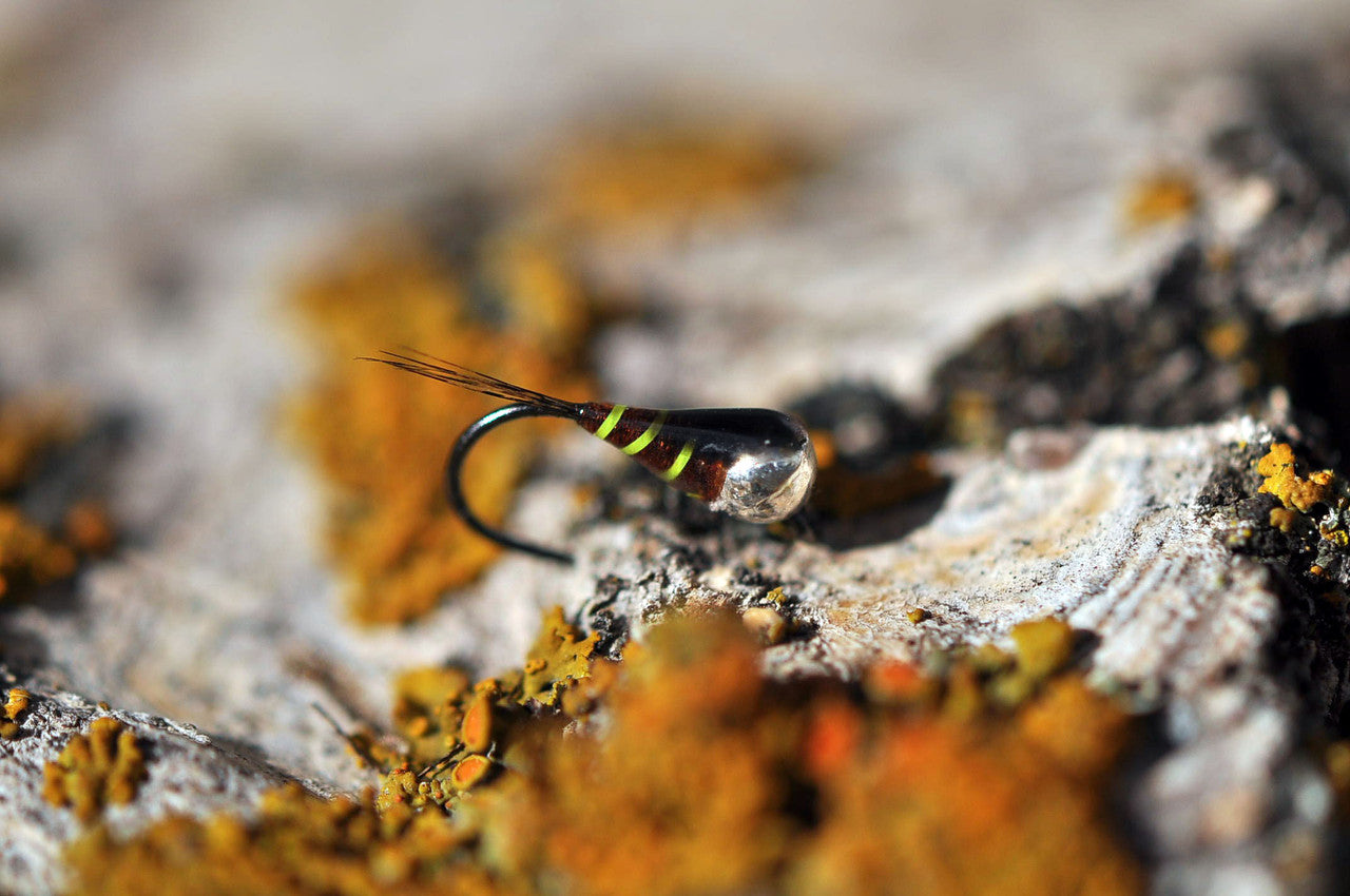 One of the most uniqe Perdigons we carry, an unusually vibrant rib gives this bug it's moniker, tied by Cesar Dominquez of Spain